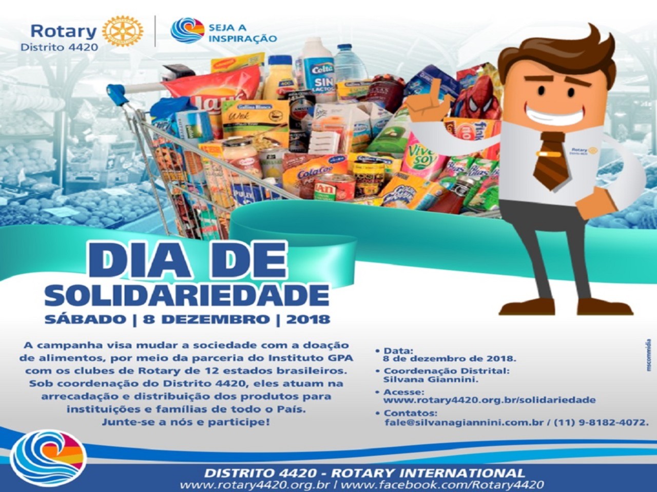 A campanha visa mudar a sociedade com a doação de alimentos, por meio da parceria do Instituto GPA com os clubes de Rotary de 12 estados brasileiros. Sob coordenação do Distrito 4420, eles atuam na arrecadação e distribuição dos produtos para instituições e famílias de todo o País. Junte-se a nós e participe!